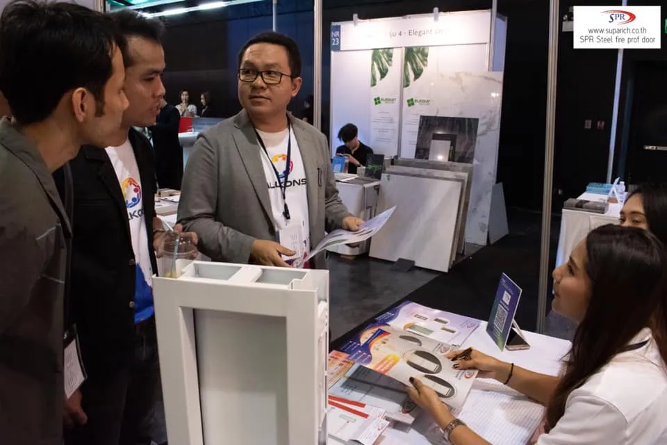 ภาพบรรยากาศ ออกบูธงาน Real ConNextเพื่อแนะนำสินค้า ศุภริช เช่น ประตูเหล็กประตูหนีและอุปกรณ์ประตูรวมไปถึง ผนังห้องน้ำสำเร็จรูปของ VALORณ Vioce ถนนวิภาวดี-รังสิต