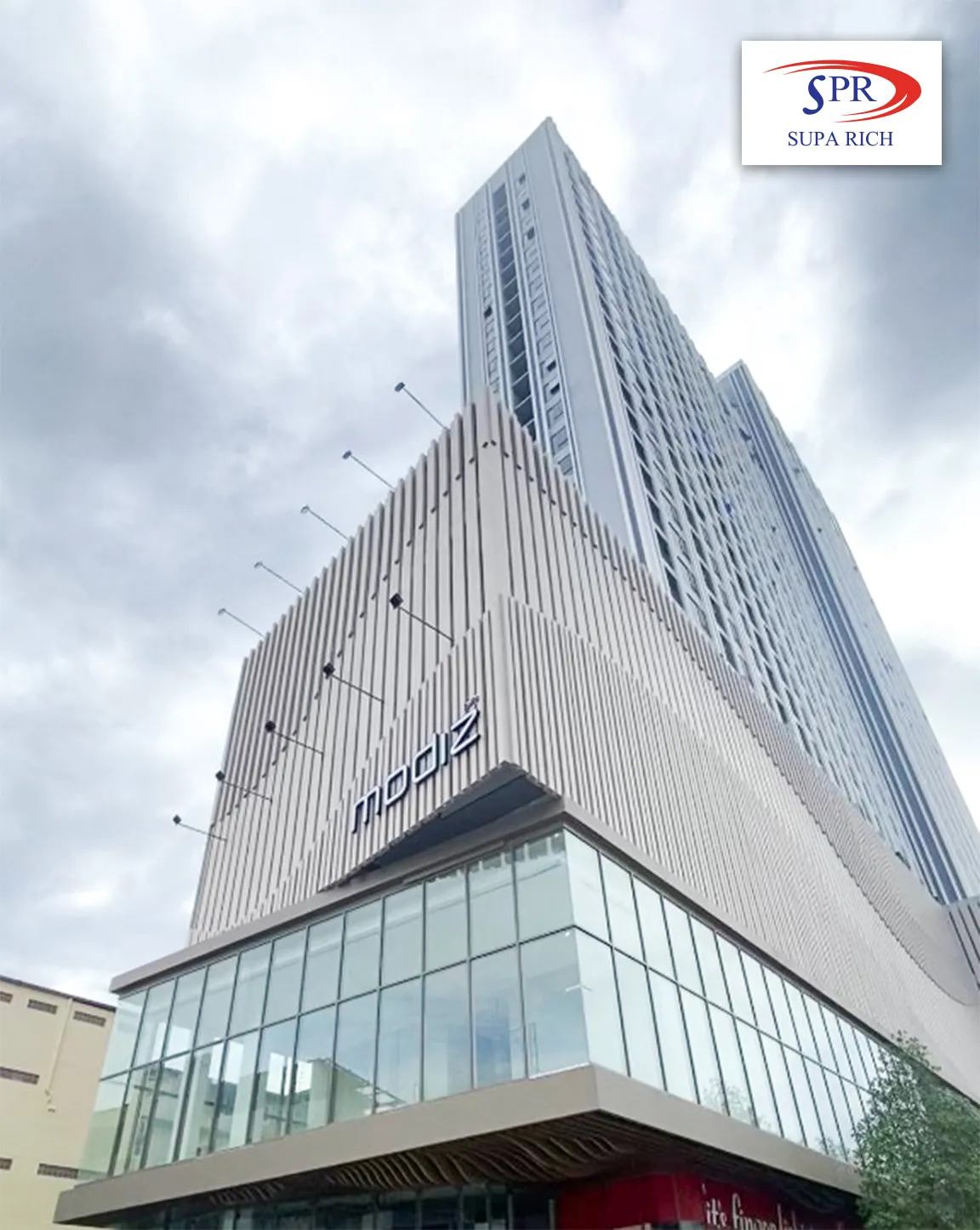 🔸 Modiz Rhyme Ramkhamhaeng is a luxury 30-storey condominium in the heart of Ramkhamhaeng, thoughtfully designed for modern living. Residents enjoy convenient access by road, BTS, and boat. The rooftop communal area spans 3 floors and features a saltwater swimming pool, fitness center, private lounges for guests or meetings, a Co-Kitchen for special meals, and a private cinema on the 30th floor.