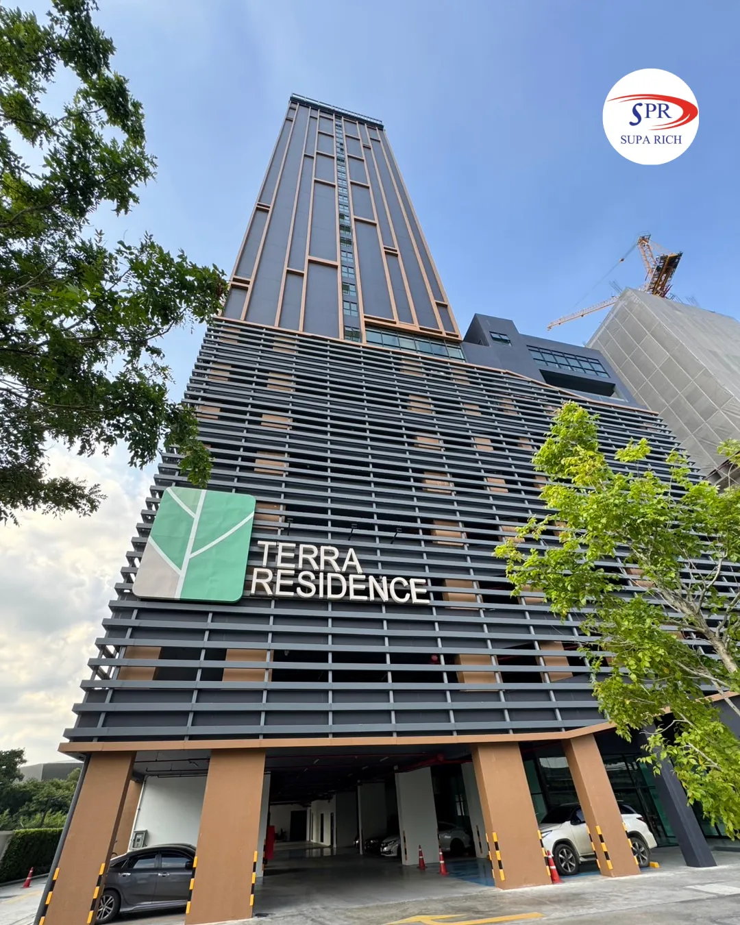 🔸 Terra Residence consists of a single 33-storey building with 661 units, offering 4 room types. Following the concept “Your Dreams Matter,” the project provides extensive communal spaces for a more convenient lifestyle. It offers the best value in the area, enabling residents to live fully and achieve success. Facilities include 24-hour security, CCTV, a rooftop swimming pool, Co-Living Space, and a lobby.